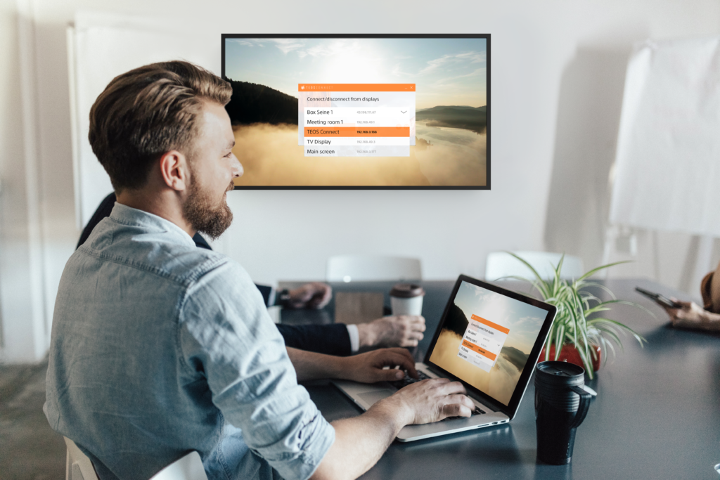 Trådlös spegling från din enhet till en större monitor i mötesrummet.
